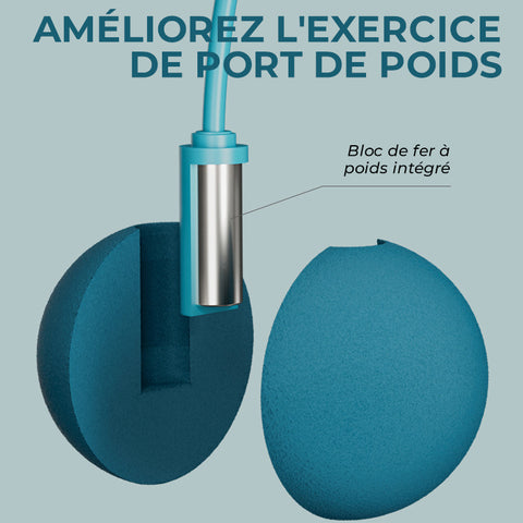 Balle de musculation : Une balle de saut à corde solide produite par EVA Company. La balle lestée permet la sensation de force centrifuge lorsque la corde oscille.