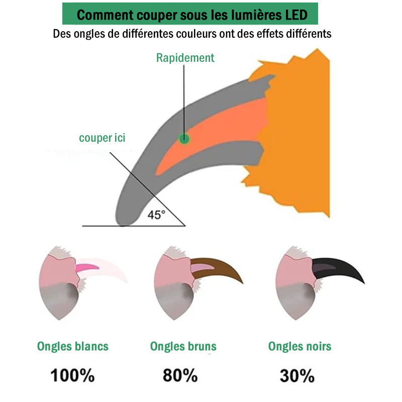 🐺【La LED illumine la lignée parfaite】 Le coupe-ongles pour animaux de compagnie a une lumière LED lumineuse intégrée qui illumine clairement la ligne de saignement des ongles de l'animal. Il suffit de couper la partie transparente, ce qui réduit considérablement le risque de couper votre animal de compagnie. Prévenir les saignements et les infections bactériennes. Cela vous procurera une expérience plus détendue et protégera la santé des animaux de compagnie et des membres de la famille.