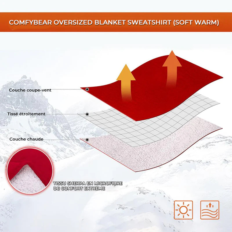 Il fonctionne à la fois comme un sweat à capuche géant et une couverture super douce et confortable pour la sieste.