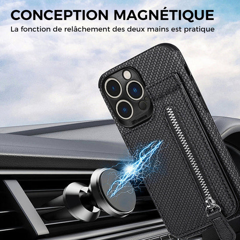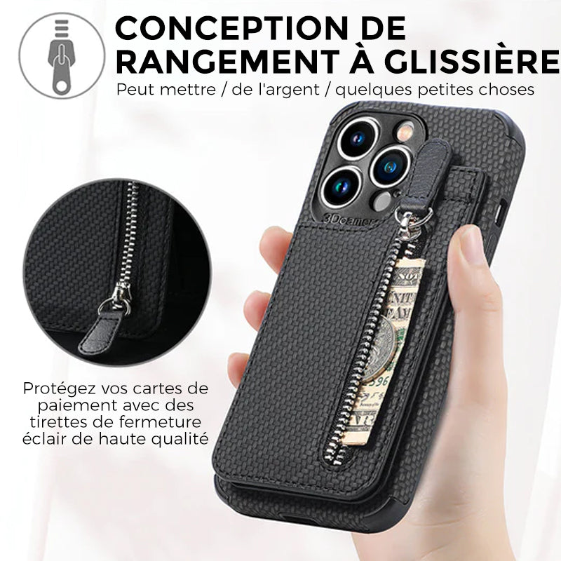 1 * Couverture de portefeuille à fermeture éclair magnétique avec porte-carte de crédit