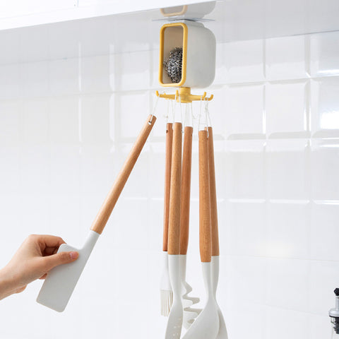 [Conception humanisée] Il y a plusieurs crochets pivotants en bas, qui peuvent accrocher plusieurs ustensiles de cuisine pour un rangement facile.