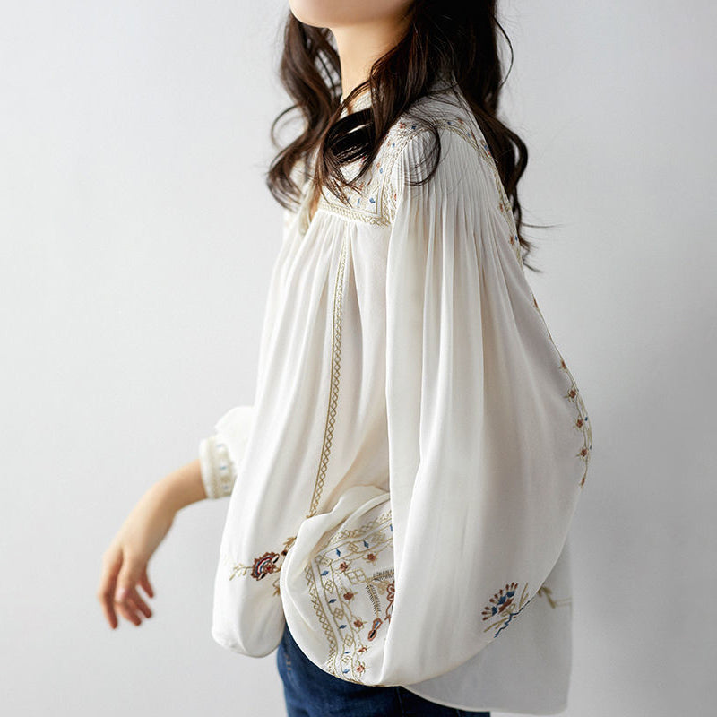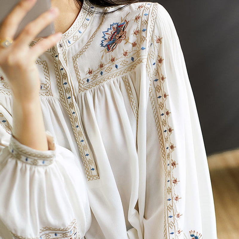 - 1* Élégant Chemisier En Mousseline Brodé Blanc De Qualité Supérieure
