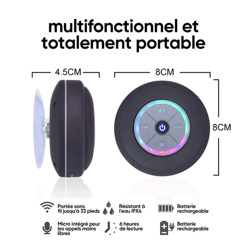 • BOÎTIER ÉTANCHE IPX4: Notre enceinte Bluetooth pour salle de bain est idéale pour écouter de la musique sous la douche, dans la cuisine ou au bord de la piscine en utilisant votre appareil Bluetooth ou en filaire via la prise casque de 3,5 mm! REMARQUE: les appareils IPX4 ne sont pas totalement submersibles sous l'eau.