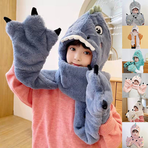 - 1 * Enfant en bas âge enfants dessin animé dinosaure polaire en peluche chapeau gants écharpe 3 en 1 ensemble