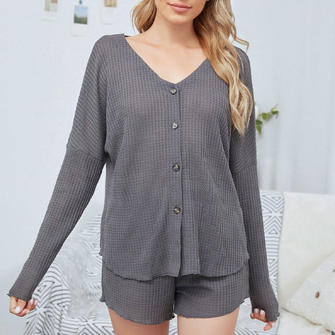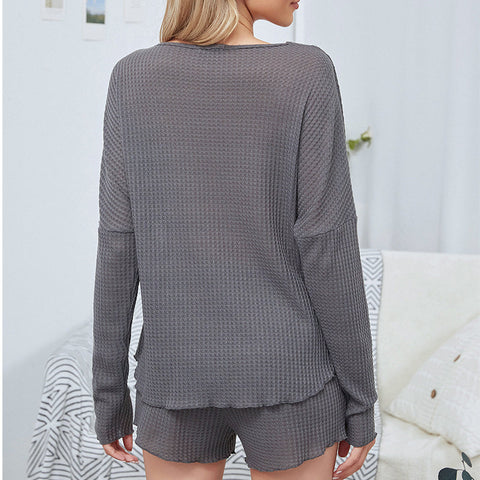 Haut de pyjama: cet ensemble décontracté pour femme a un col en V, une coupe ample décontractée et une couleur unie. Ce joli haut gaufré à manches longues est plein d'extensibilité, parfait pour la saison de détente.