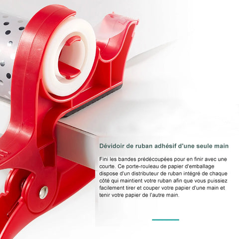Distribution de ruban à une main - Plus de bandes pré-découpées pour finir par un court. Ce gadget d'emballage cadeau a un distributeur de ruban intégré de chaque côté qui maintient votre ruban afin que vous puissiez tirer et couper facilement d'une main et maintenir votre papier en place avec l'autre.