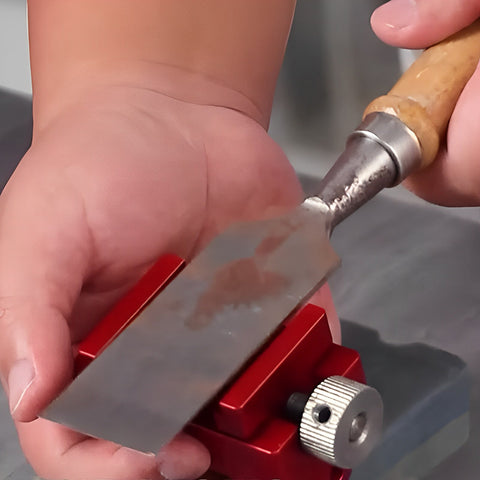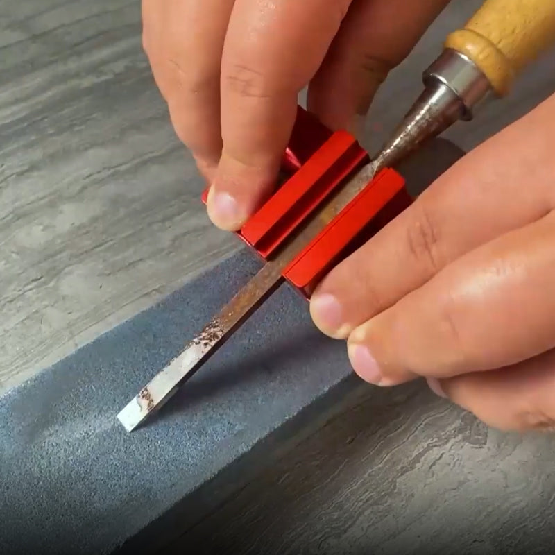 Aide à l'affûtage nouvellement conçue - Ce guide d'affûtage peut fixer et ajuster l'angle auquel le bord du ciseau entre en contact avec la pierre à aiguiser afin que tout le bord du couteau puisse être affûté uniformément.
