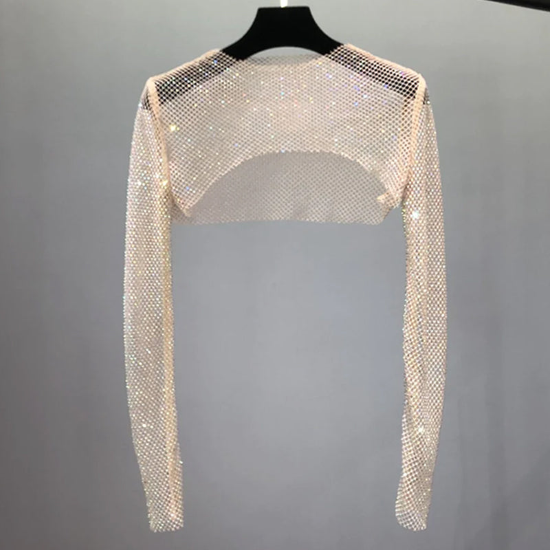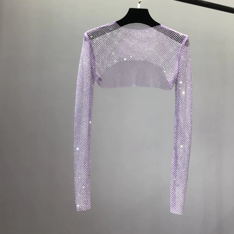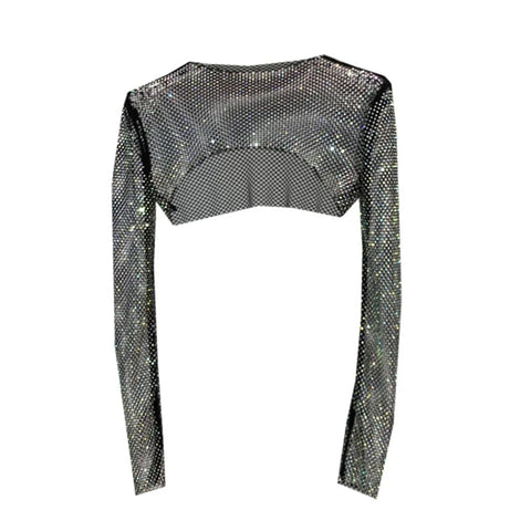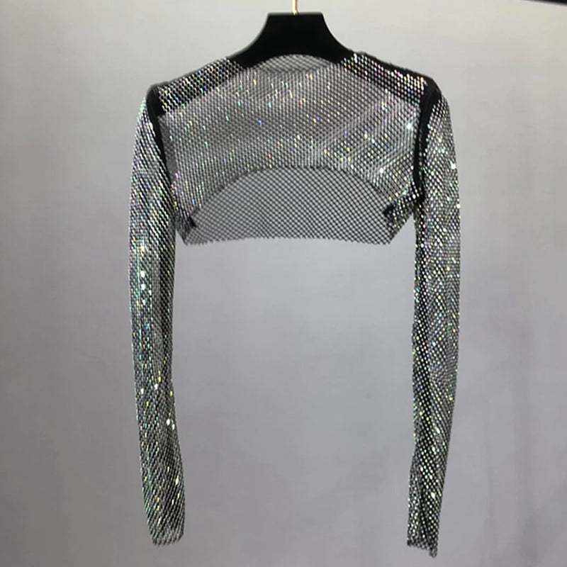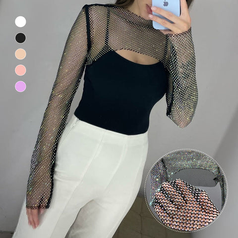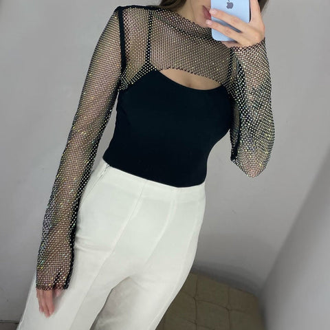 Un design spécial vous rend plus attrayant: Voir à travers voir à travers maillage strass chemisier, manche longue, cou rond, oose ajustement, look de chemisier super sexy. Il peut être porté sur un soutien-gorge ou un gilet, c'est un look super sexy avec un soutien-gorge noir. Fashion Sheer mesh voir à travers la conception de strass, vous rendre facilement exceptionnel et accrocheur.