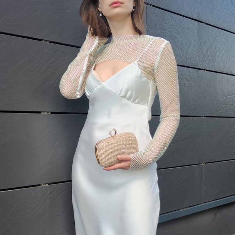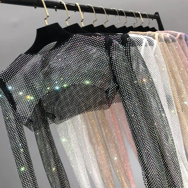 Matériau: Polyester & Rhinestone, le tissu de cristal est super doux et extensible, il est confortable pour la peau..