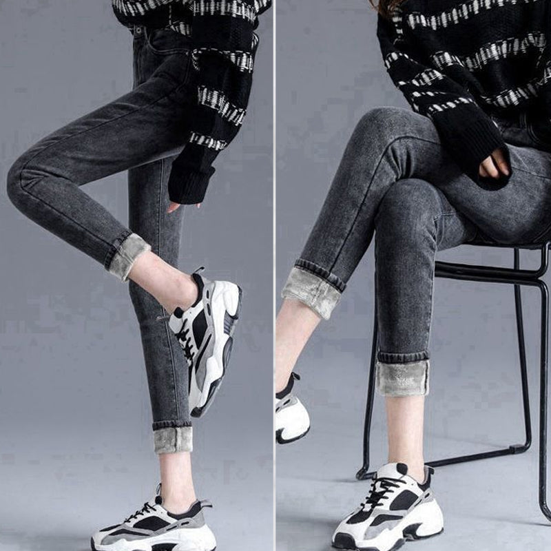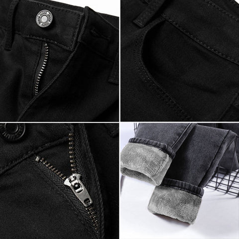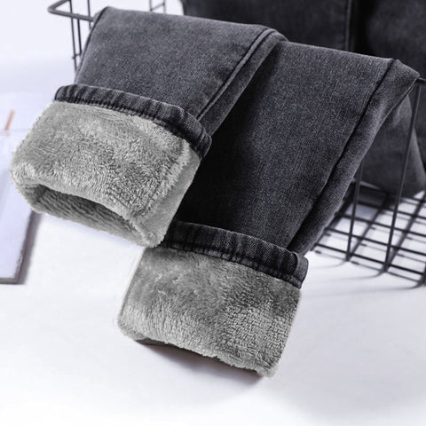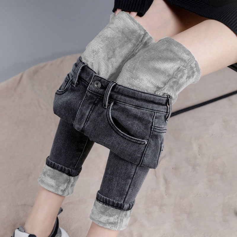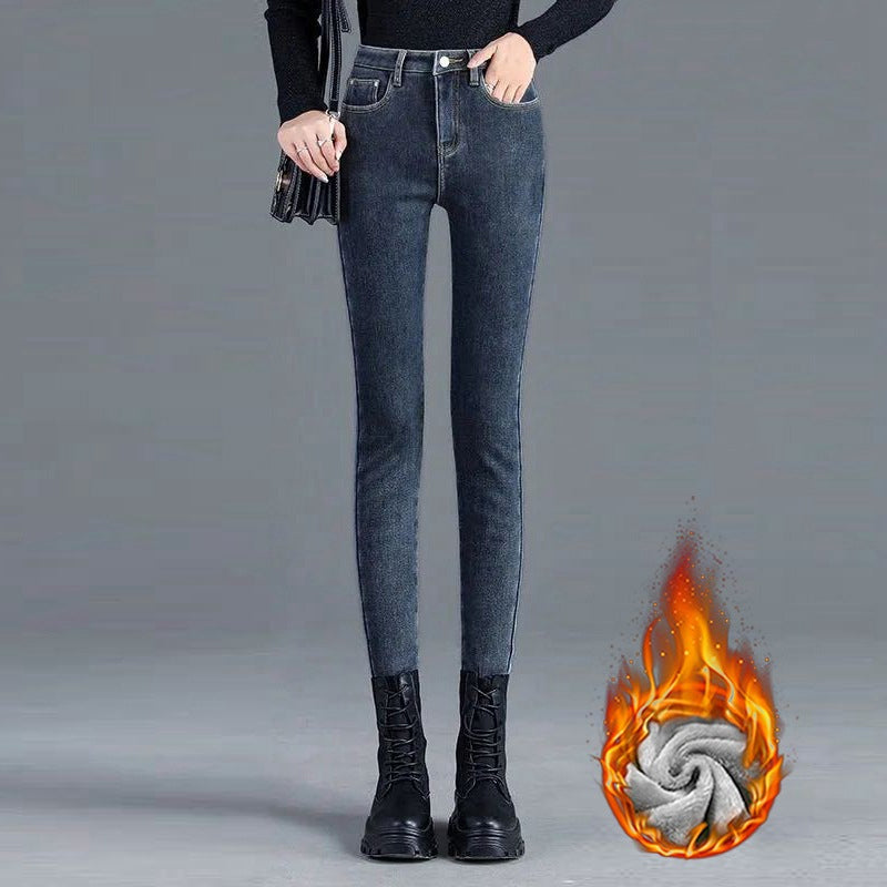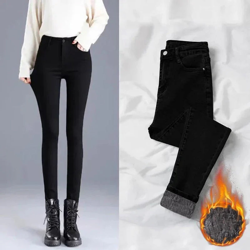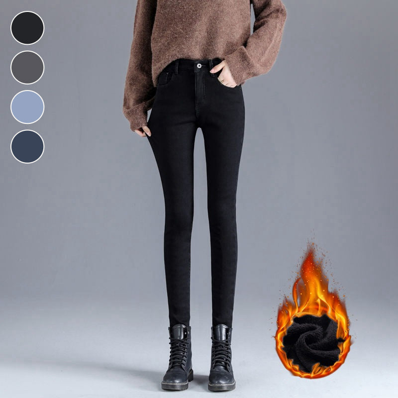 - 1 paire de jeans thermiques doublés en polaire pour femme