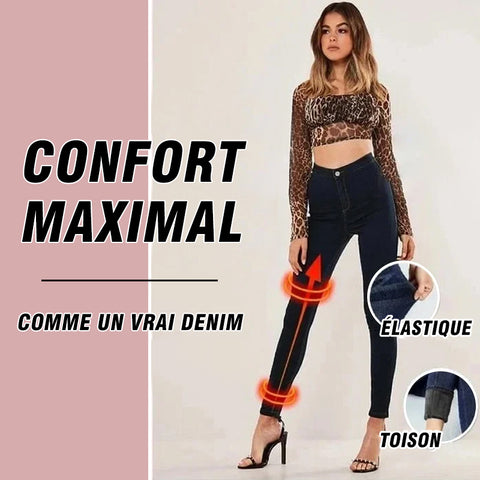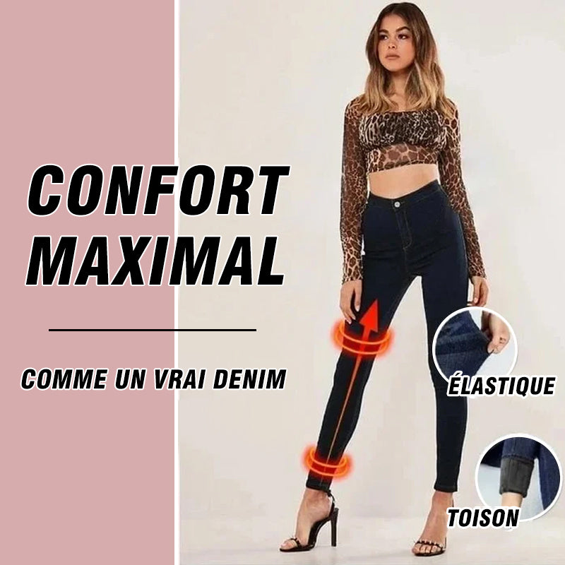 L'extérieur donne l'impression de porter votre élégant jean, mais la doublure douce et épaisse en polaire de velours garde vos jambes aussi chaudes, bien au chaud et confortables que vos leggings préférés.Parfait pour toutes vos tenues de tous les jours!