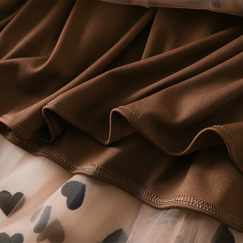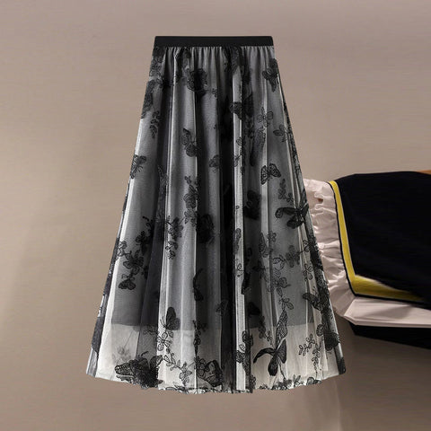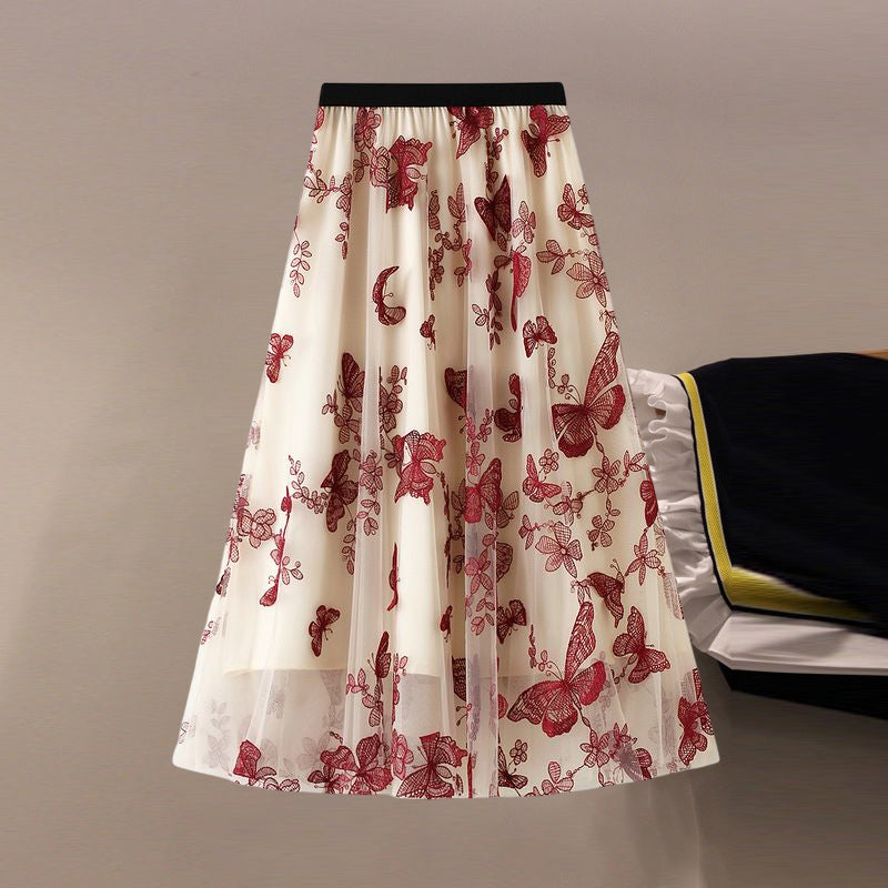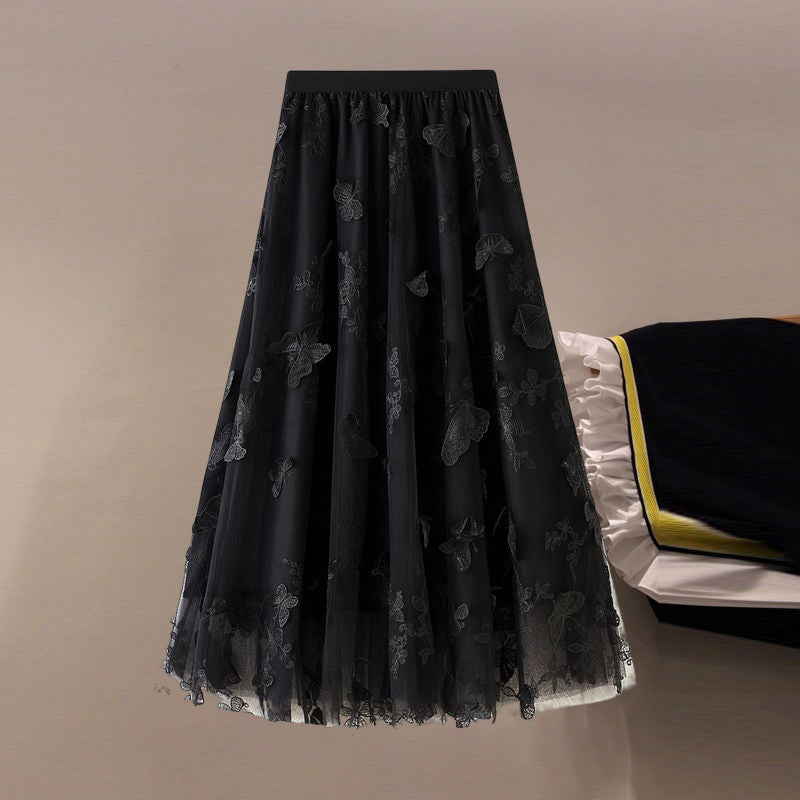 [Détails du produit] Superposition de tulle en maille. Garniture de roses en maille 3D. Ceinture élastique. Doublé. 100% Polyester. Lavage à la main à froid