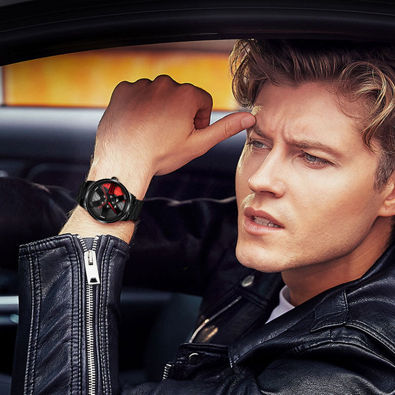 Conception de jante de voiture de course: Inspirée de la jante de voiture de sport haut de gamme et de l'étrier de frein de sport, la conception du cadran creux combine ingénieusement des éléments de voiture de course et des éléments de montre, démontrant parfaitement la beauté des machines. Le meilleur cadeau pour homme!