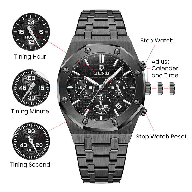 ⌚Chronographe sportif: Le sous-cadran multifonctionnel peut fonctionner, chronographe, calendrier, exécuter les secondes. Vous fournir une utilisation multifonctionnelle.
