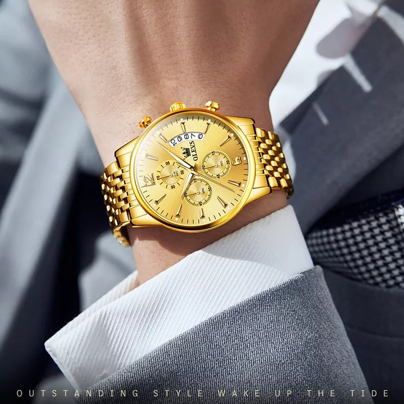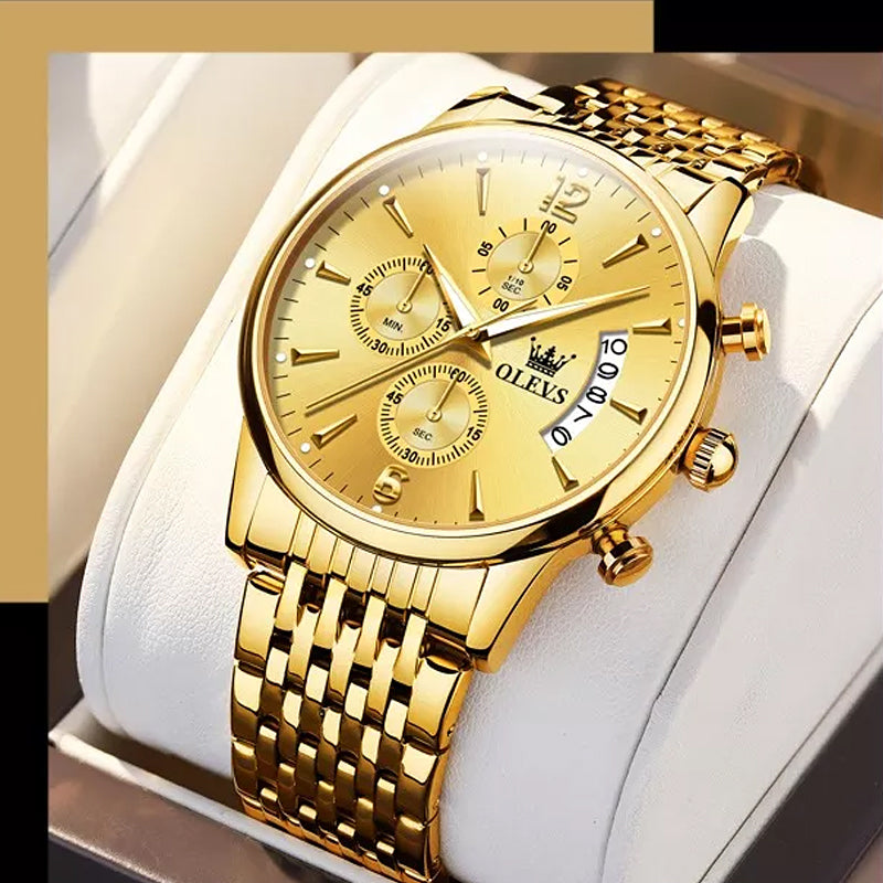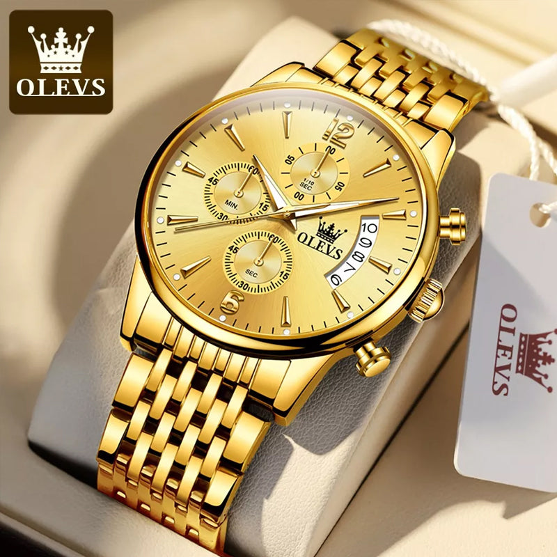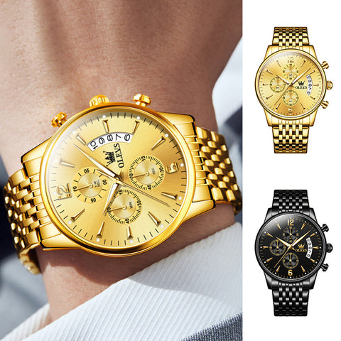 - 1* Montre Mécanique Automatique de Luxe à Cadran Chronographe à Trois Yeux en Or