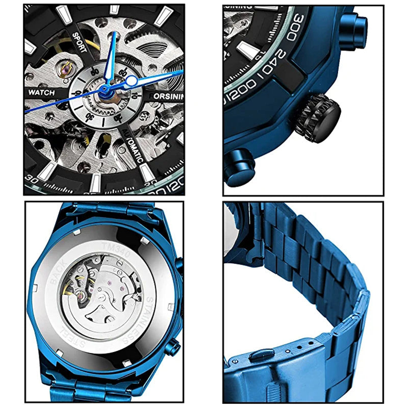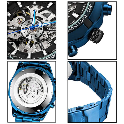 【Mouvement mécanique】Pas besoin d'utiliser des piles, mais il est à remontage automatique ! Le dos de la montre adopte un design traversant, et à travers le dos du verre saphir, on peut clairement observer la beauté du mouvement. La montre est livrée avec un bracelet en acier inoxydable, qui est confortable à porter et a une posture très élégante. L'ensemble de la chaussure a été méticuleusement poli pour un ajustement plus raffiné.