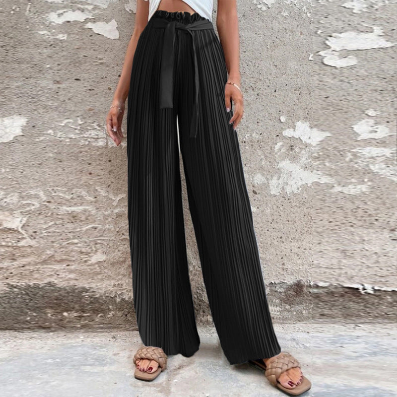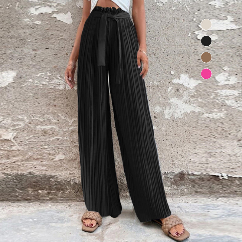 • Caractéristiques: Cordon de serrage, taille élastique, jambe large, taille haute, couleur unie, coupe ample, style décontracté.