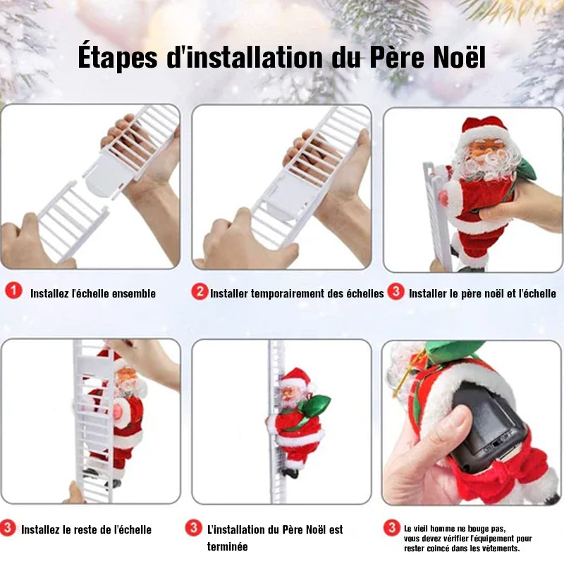 • Unique et créatif: le père Noël d'escalade électrique animé peut monter à plusieurs reprises sur l'échelle et descendre avec de la musique, portant une expression faciale joyeuse avec un mini sac sur le dos. La couleur rouge vif fait du Père Noël l'une des décorations les plus attrayantes de votre sapin de Noël.
