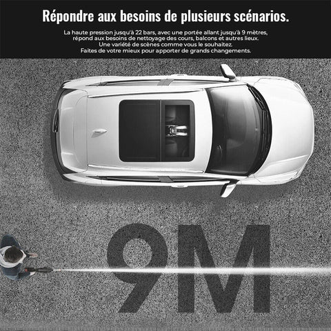 - Un moteur puissant pressurise le débit d'eau à 22 bars, éliminant facilement la boue et les taches les plus tenaces des surfaces extérieures de la maison, des portails, des bancs, des meubles et équipements de jardin, des vélos, des motos, des voitures, des marches et plus encore.