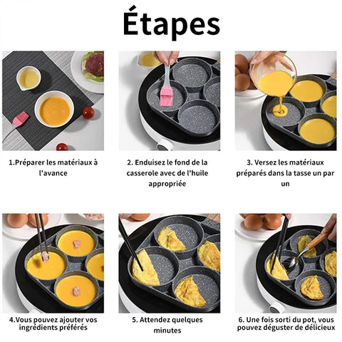 La poêle peut être utilisée pour cuire des œufs frits, des hamburgers, etc. La casserole a 4 compartiments pour une cuisson rapide et facile.