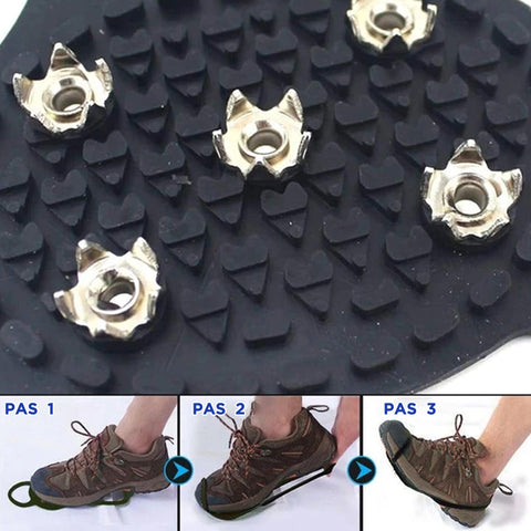 [Ongles antidérapants à 5 griffes] Les clous en acier à 5 dents résistants à l’usure peuvent fournir une excellente traction sur divers terrains ou dans d’autres conditions difficiles. Le placement stratégique des ongles assure une répartition uniforme du poids et un confort et une durabilité durables.
