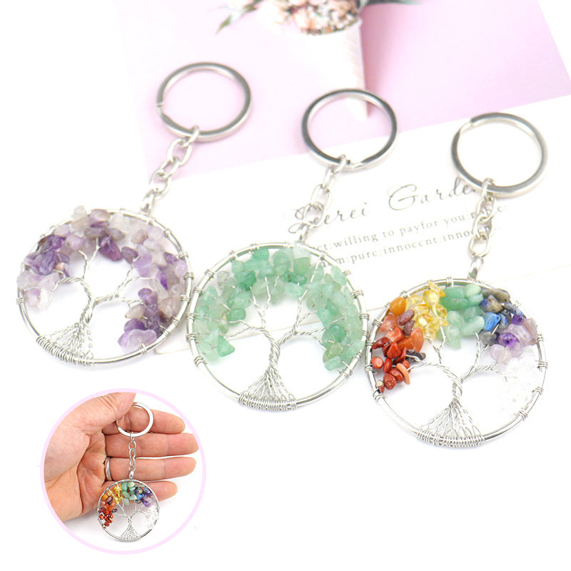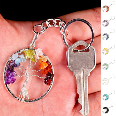 Porte-clés Arbre de vie - Les porte-clés en cristaux de pierre naturelle sont magnifiques et vous apportent une énergie positive, réduisent les humeurs négatives, vous rendent une vie tranquille, maintiennent la tranquillité d'esprit. Un porte-clés arbre de vie est associé à la connaissance et à la sagesse, un accessoire significatif pour vous.