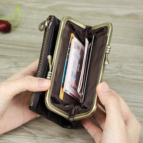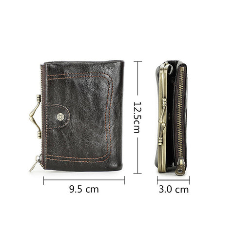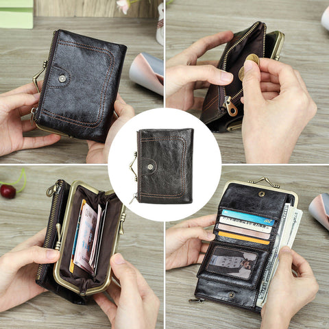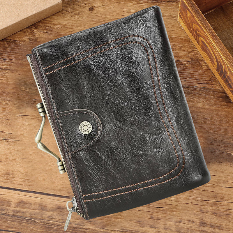 ►► 【Matériel】 Le porte-cartes de crédit est en cuir de vachette ciré à l'huile vintage, le cuir est résistant à l'usure et aux rayures, la surface du cuir est aussi brillante que la cire et la texture est douce et confortable.