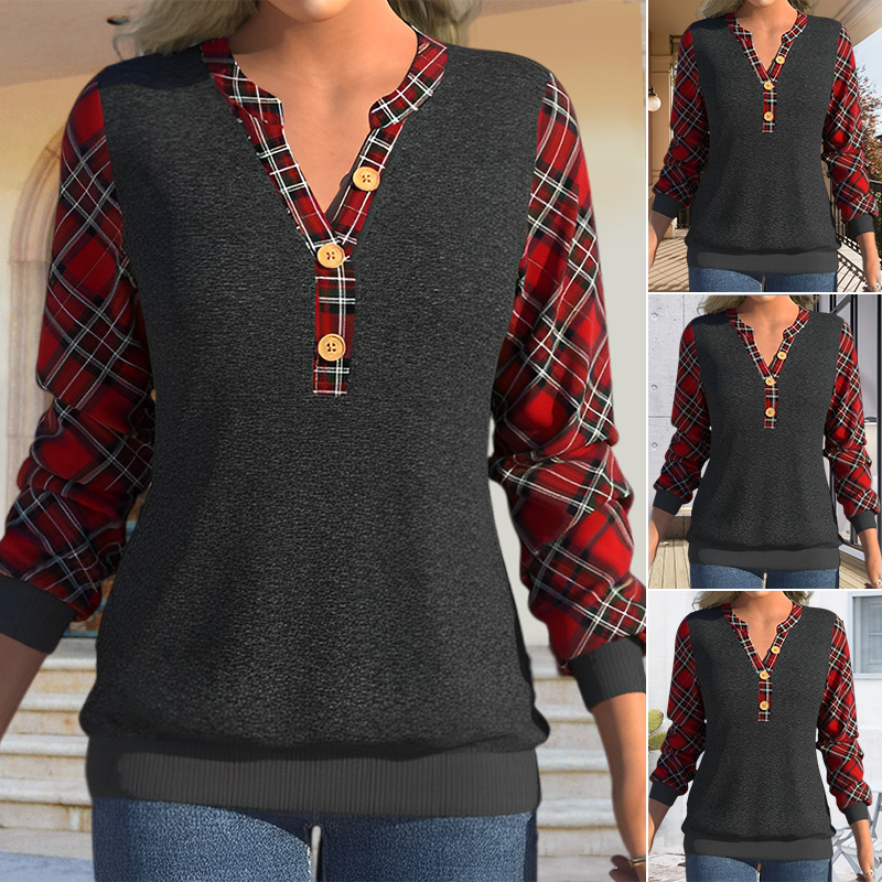 Assortiment: Ce haut comporte une encolure en V et des boutons. Le tissu est extensible, mi-poids et super confortable! Associez-le à vos jeans skinny préférés pour un look automnal et rétro parfait; Super avec des jeans, des leggings, des pantalons, des foulards ou des bottes!