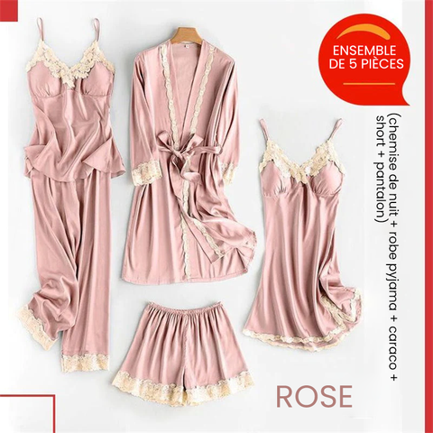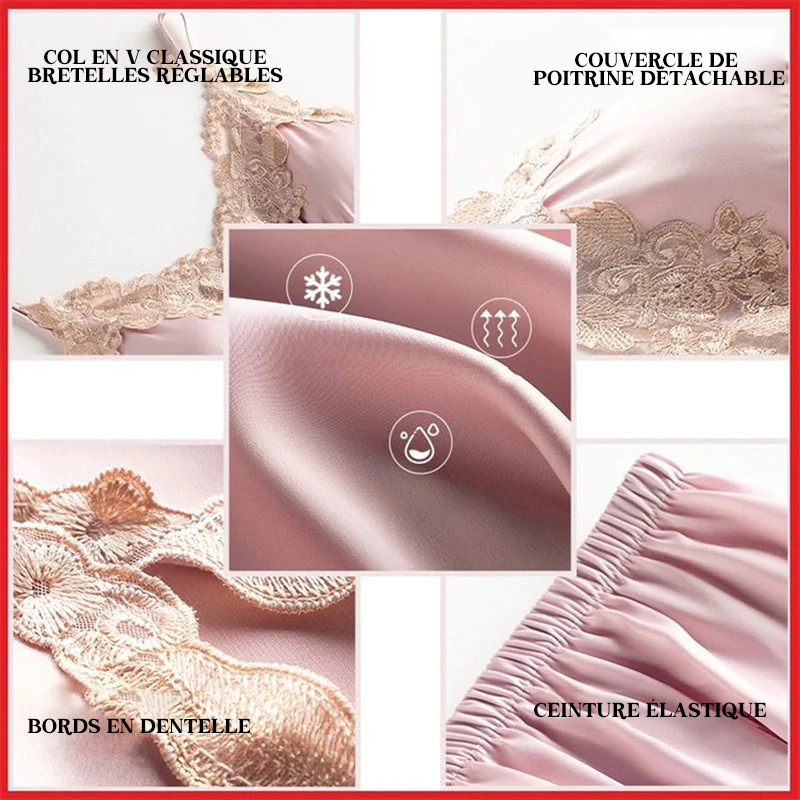 Pyjama Doux et Confortable en Dentelle de Soie Glacée