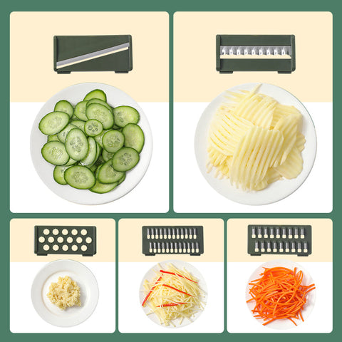 • 【Multifonctionnel 9 en 1】La lame de broyeur de légumes contient 7 lames remplaçables pour le tranchage épais/fin, le déchiquetage/déchiquetage, la spirale/le ruban. Les lames coupent facilement les fruits, les poivrons, les pommes de terre, les tomates, les oignons, l'ail, les concombres, les carottes, les betteraves. Réduisez le temps de préparation de la cuisine avec ce gadget de cuisine cadeau.