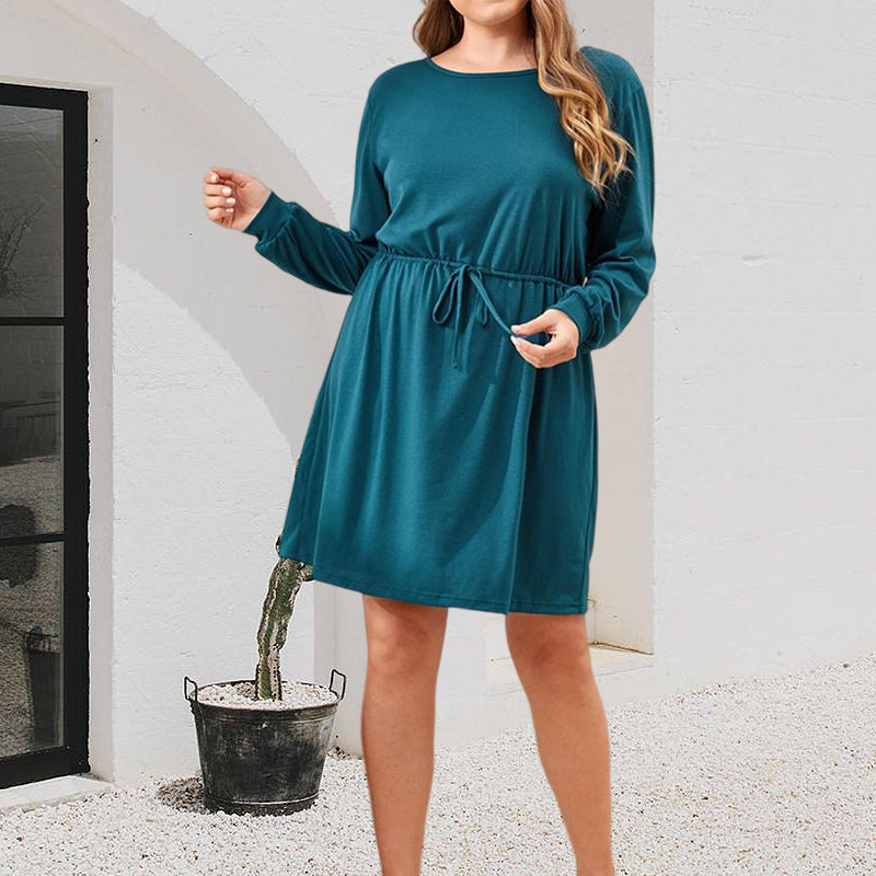 • Caractéristiques: Cette mini-robe courte est au-dessus du genou et possède un cordon de serrage à la taille pour plus de douceur et de confort. Robe à manches longues pour femmes avec pattes boutonnées retroussées, mini-robe classique à col rond.