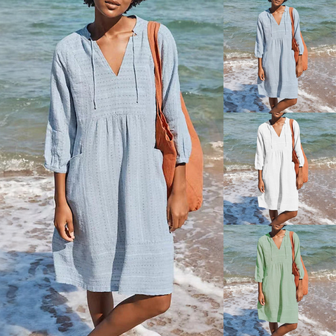 💖Polyvalent: la robe babydoll pour femme peut littéralement être portée avec des leggings, un jean, une veste en jean, un débardeur, un maillot de bain, des tongs, des cuissardes, des bottines compensées, des claquettes à talons moyens, des boucles d'oreilles à franges, des bracelets dorés, une ceinture, etc. . Cette robe est flatteuse et facile à habiller.