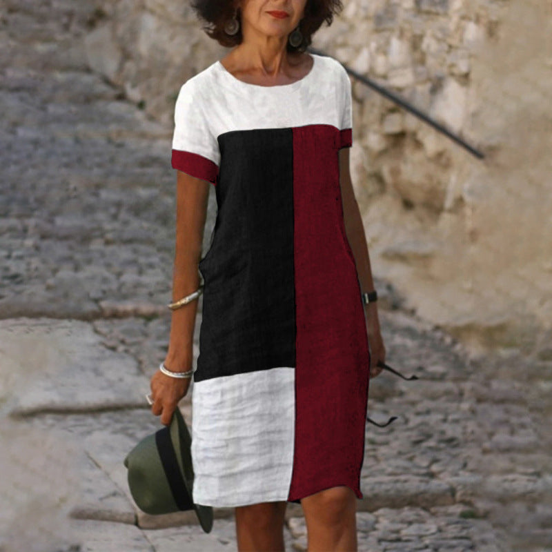 • Caractéristiques: col ras du cou décontracté, robe tunique ample, manches color block, devant torsadé, poches sur les coutures latérales, robe midi trapèze pour femme, design simple et élégant pour un look chic.