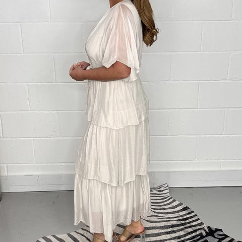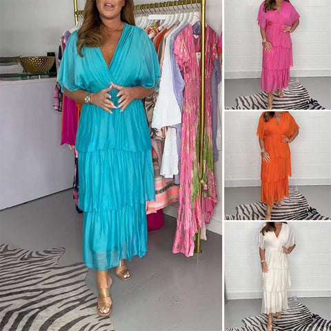 Robe de gâteau à manches volantées de couleur unie à la mode