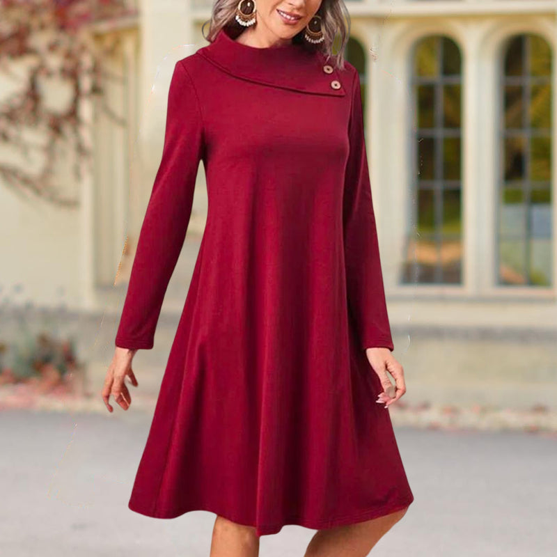 Le paquet contient: 1 x Robe de Noël de Couleur Unie avec Des Boutons Élégants