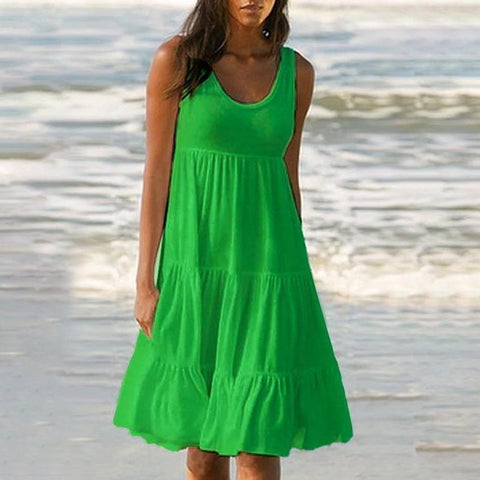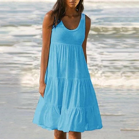 Robe sans manches à col rond avec un design de couleur unie, une couleur mignonne et fraîche, cette robe vous fera paraître plus mince et plus grande. -
