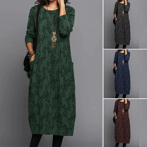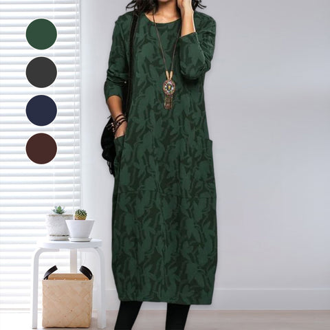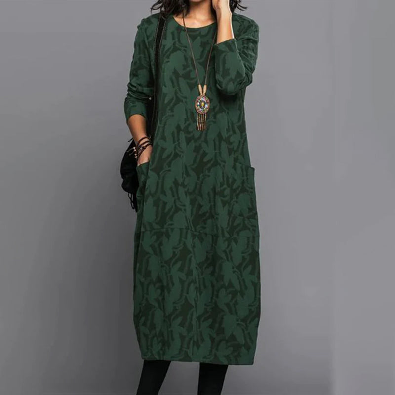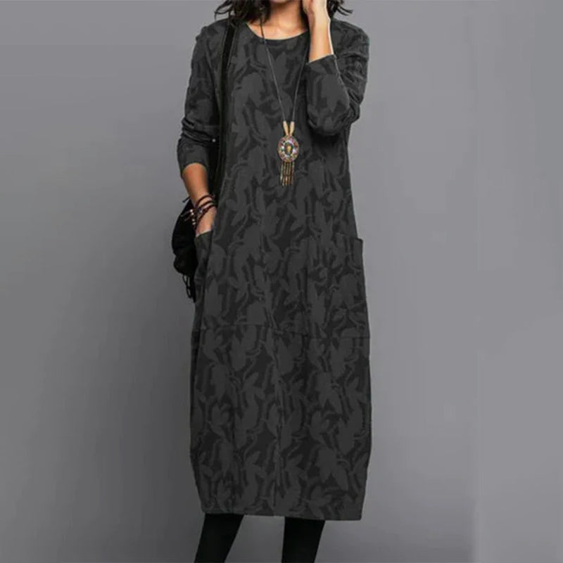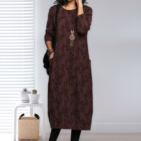 Robe de Poche Imprimée à Manches Longues