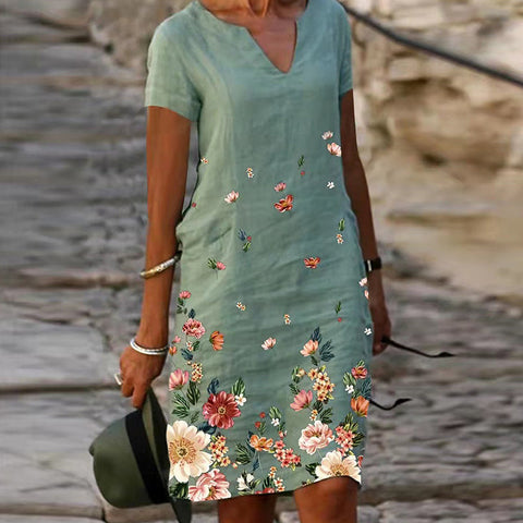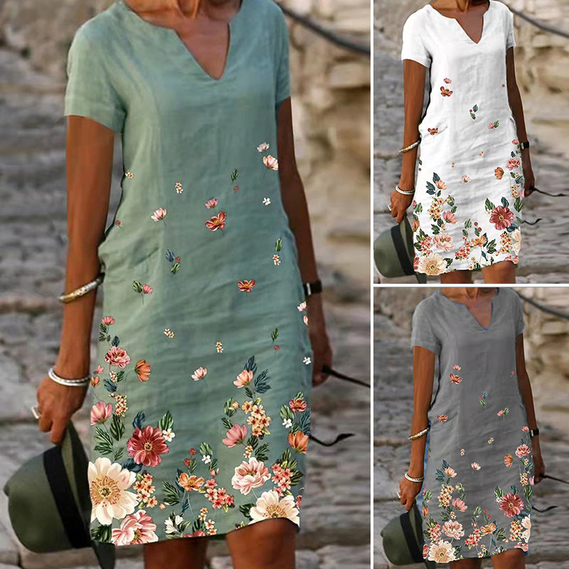 - 1*Robe En Coton Et Lin Á Fleurs