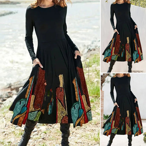 【Robe imprimée】: La robe caftan décontractée est de style ample, avec un imprimé anneau annuel rétro, des manches 3/4, un col rond, une robe d'été ample, des robes longues pleine longueur.
