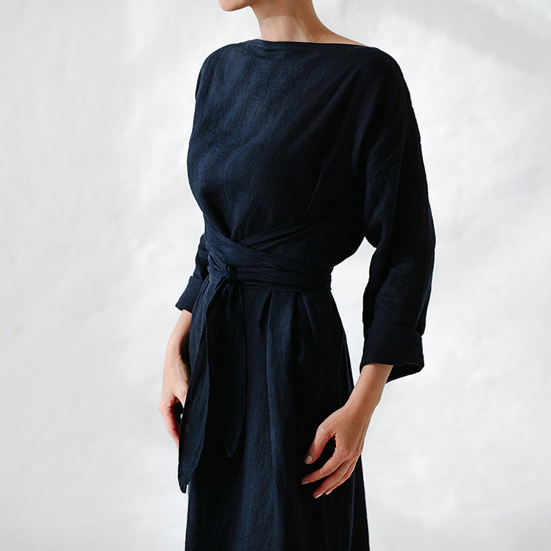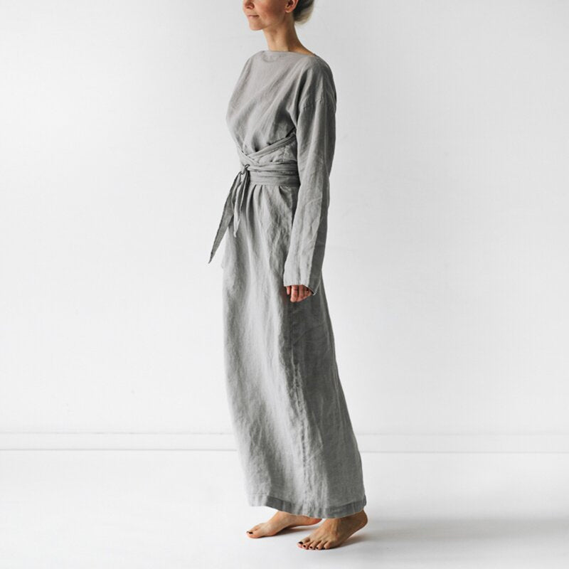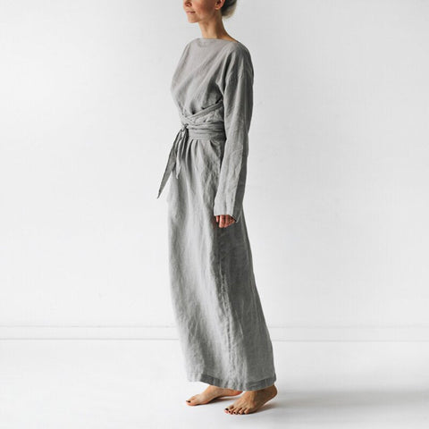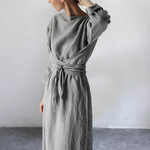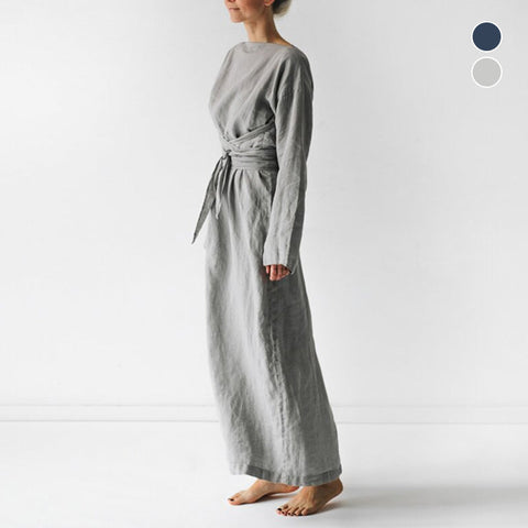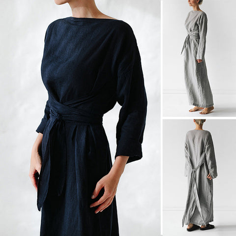 • 1 * Robe Longue Nouée Ample en Coton et Lin