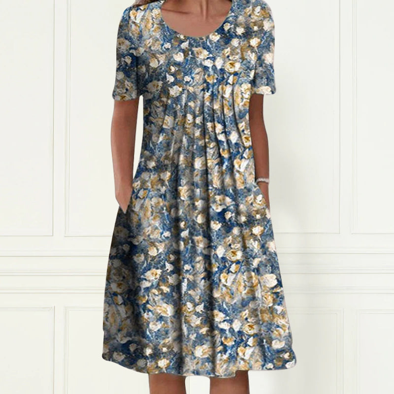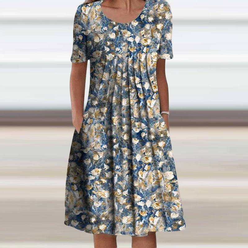 Paquet: Robe mi-longue décontractée à col rond et à fleurs * 1