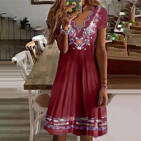 - 1 * Robe Pastorale Imprimée à Col V Ondulé