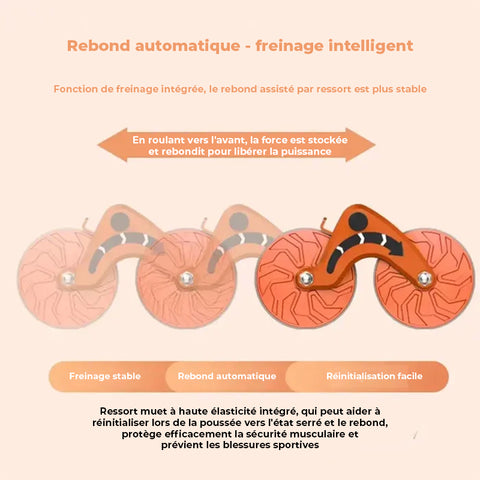 REBOND AUTOMATIQUE : Le ressort intégré et une plus grande résistance peuvent empêcher la roue AB de glisser pendant un exercice en douceur. La fonction de rebond automatique peut vous protéger des blessures pendant l'exercice, particulièrement adaptée aux débutants.