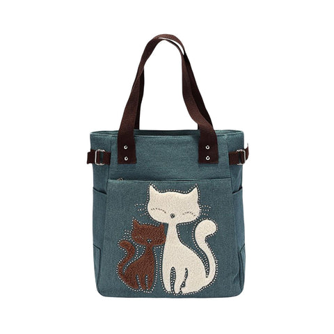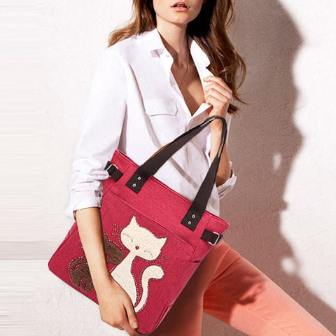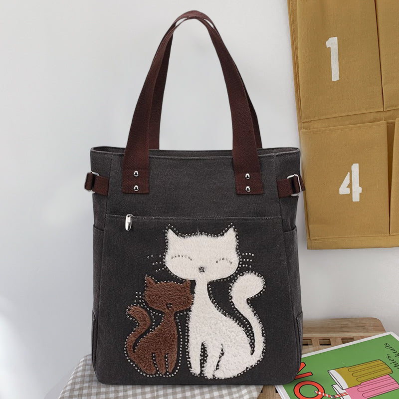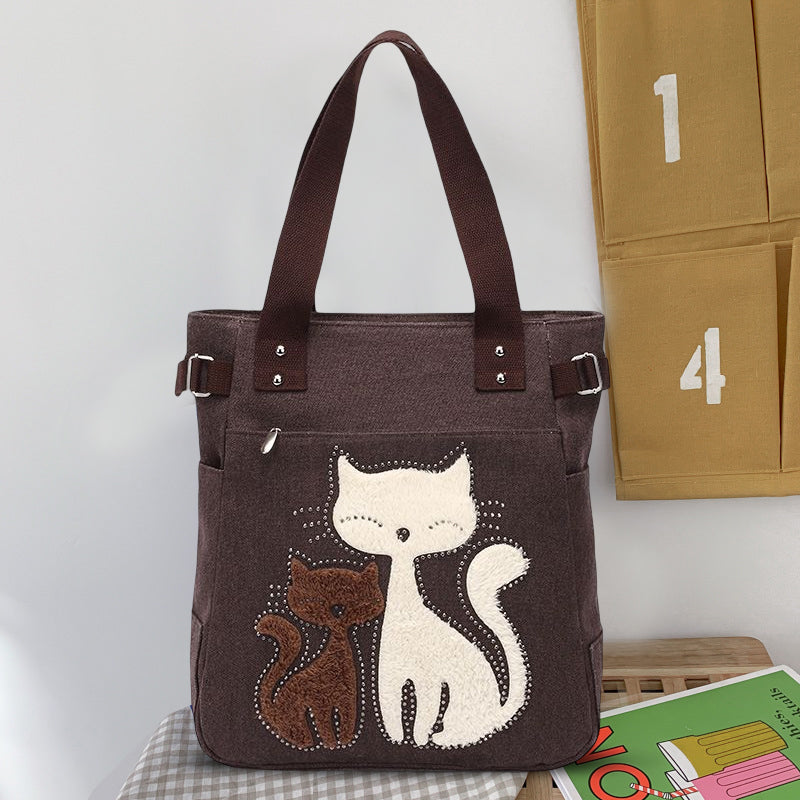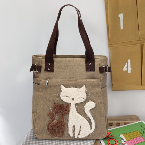 Sac à Bandoulière en Toile d'impression de Chat de Grande Capacité