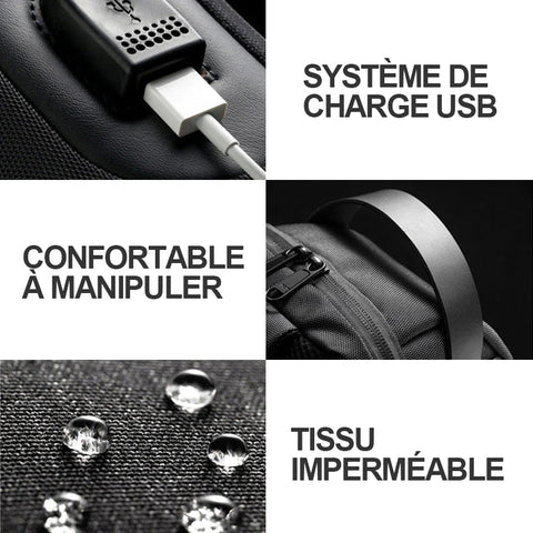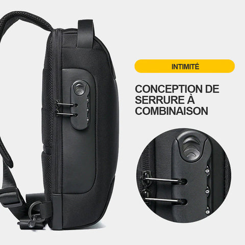 Le verrouillage par mot de passe protège la confidentialité. Ce produit utilise un code à trois chiffres pour verrouiller la fermeture éclair afin d'empêcher l'ouverture et le vol du sac à bandoulière.