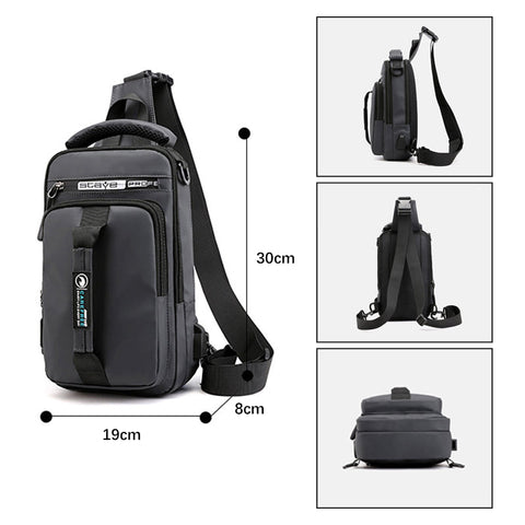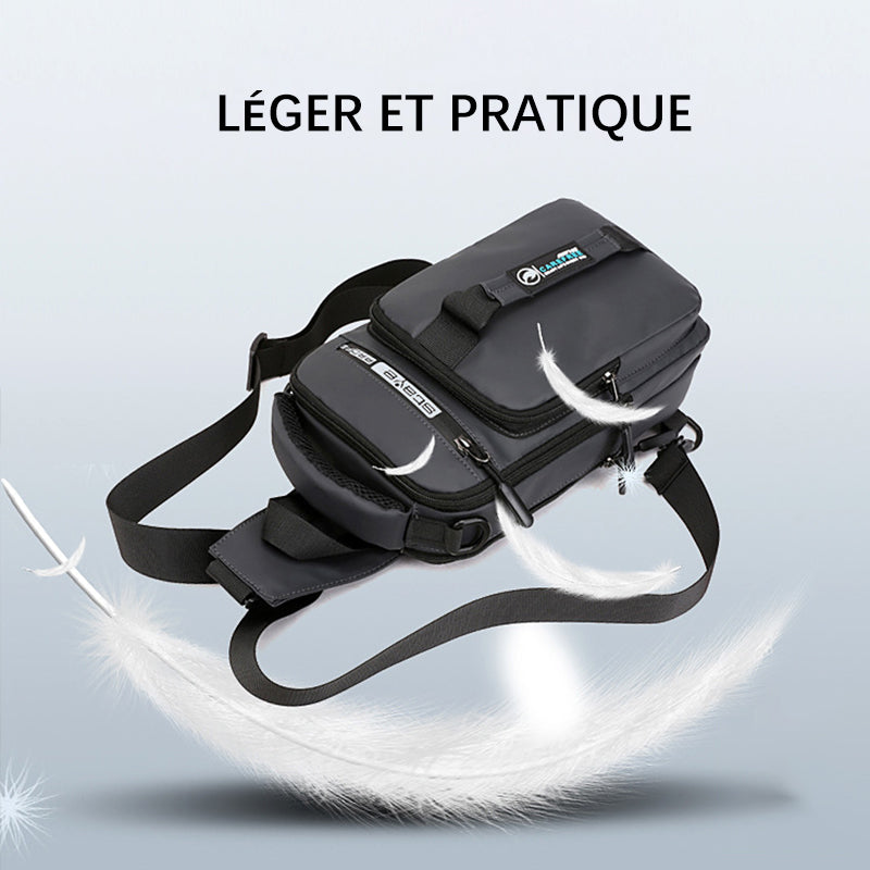 Conception du port de charge USB : Tout d'abord, connectez votre propre banque d'alimentation avec le câble d'extension USB intégré à l'intérieur du sac de poitrine. Deuxièmement, connectez votre câble USB externe au port de charge USB externe, puis il pourra charger votre téléphone portable ou d'autres appareils électroniques. Remarques : Ne comprend pas de banque d'alimentation à l'intérieur de ce sac.