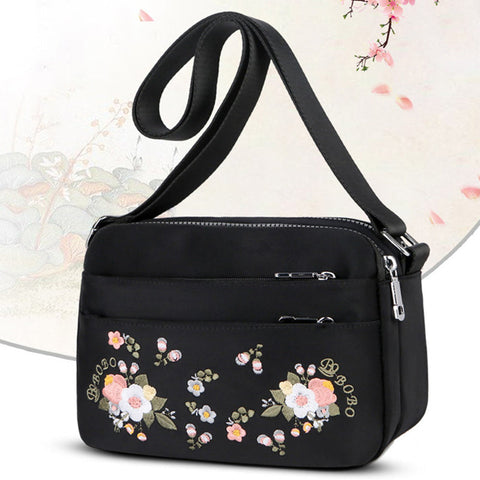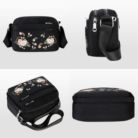 • Matériau: le sac à bandoulière floral brodé est fabriqué en nylon pratique, résistant à l'eau et aux taches pour une durabilité, une construction légère et de qualité et un entretien facile.