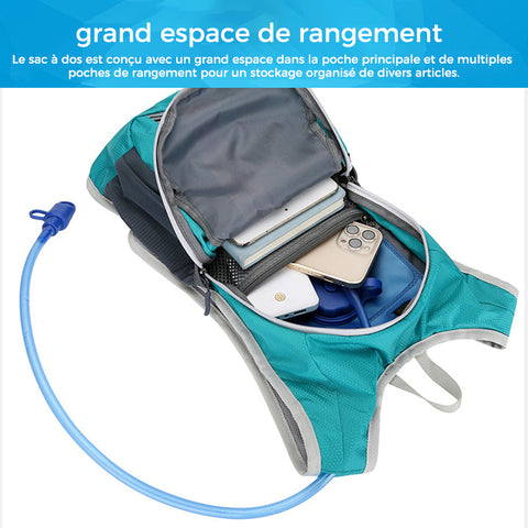 🚶【 2L DE VESSIE D'EAU POUR RESTER HYDRATÉ】 - Matériau sans BPA de qualité alimentaire, totalement sûr pour l'hydratation. Complet avec tube sans coude et embout buccal souple à haut débit avec valve marche/arrêt facilement accessible. Tolérant à la pression et étanche. Votre équipement de sac à dos de course à pied pratique.
