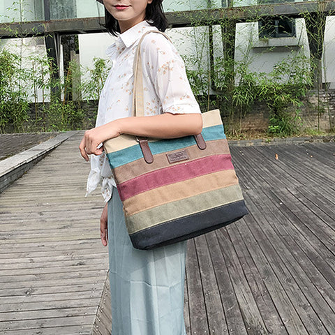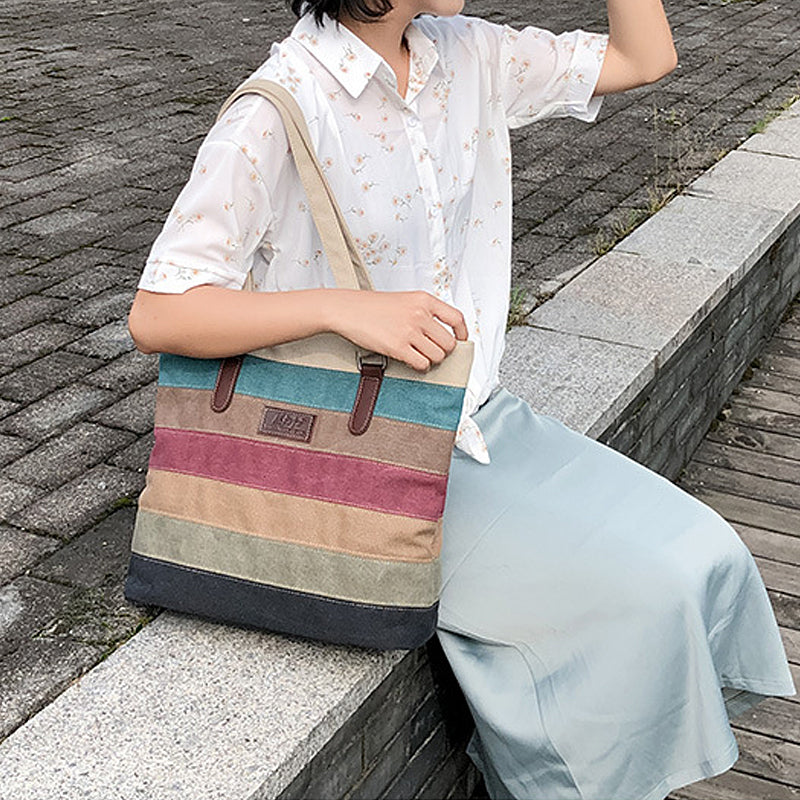 ❤ Design unique 🌸 Avec un design à rayures contrastées, ce sac fourre-tout a plus de personnalité que le sac fourre-tout moyen, vous permettant de vous démarquer de la foule. Achetez-le et montrez-vous unique !