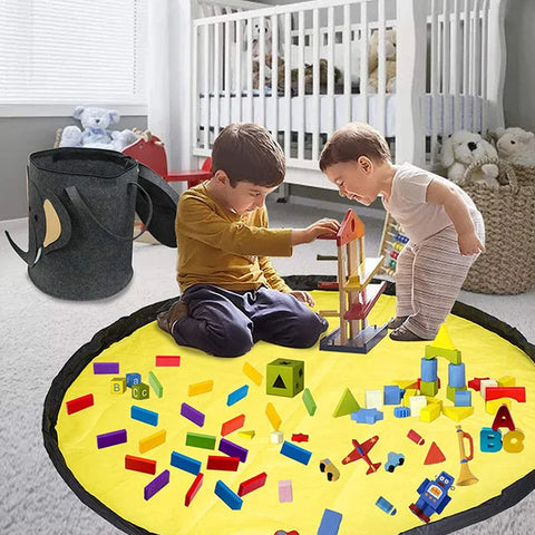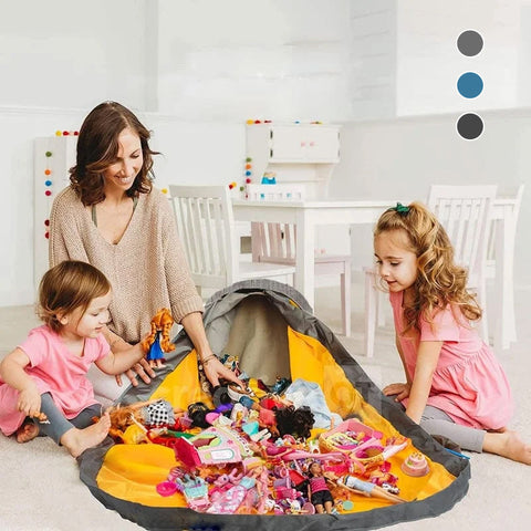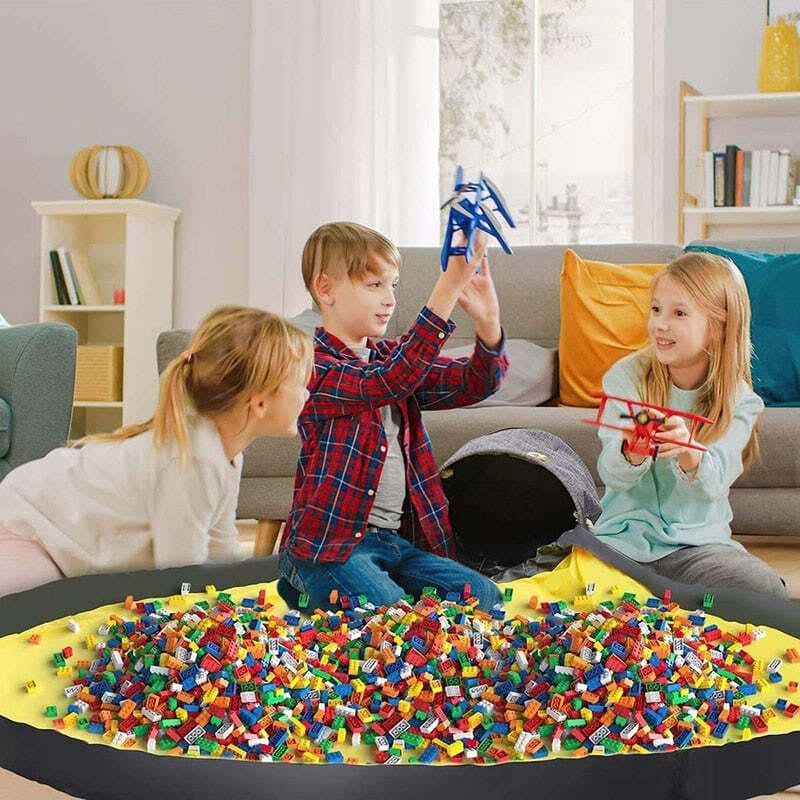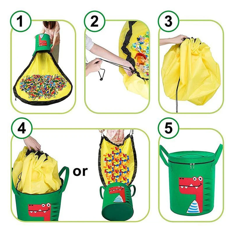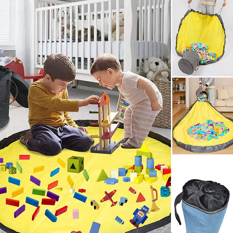 • Le tapis de jeu Tirez simplement sur les poignées et faites glisser les jouets dans le panier lorsque vous avez fini de jouer. Le tapis de jeu s'adapte facilement au-dessus des jouets dans le panier afin qu'ils puissent tous être rangés pour plus de jeu.